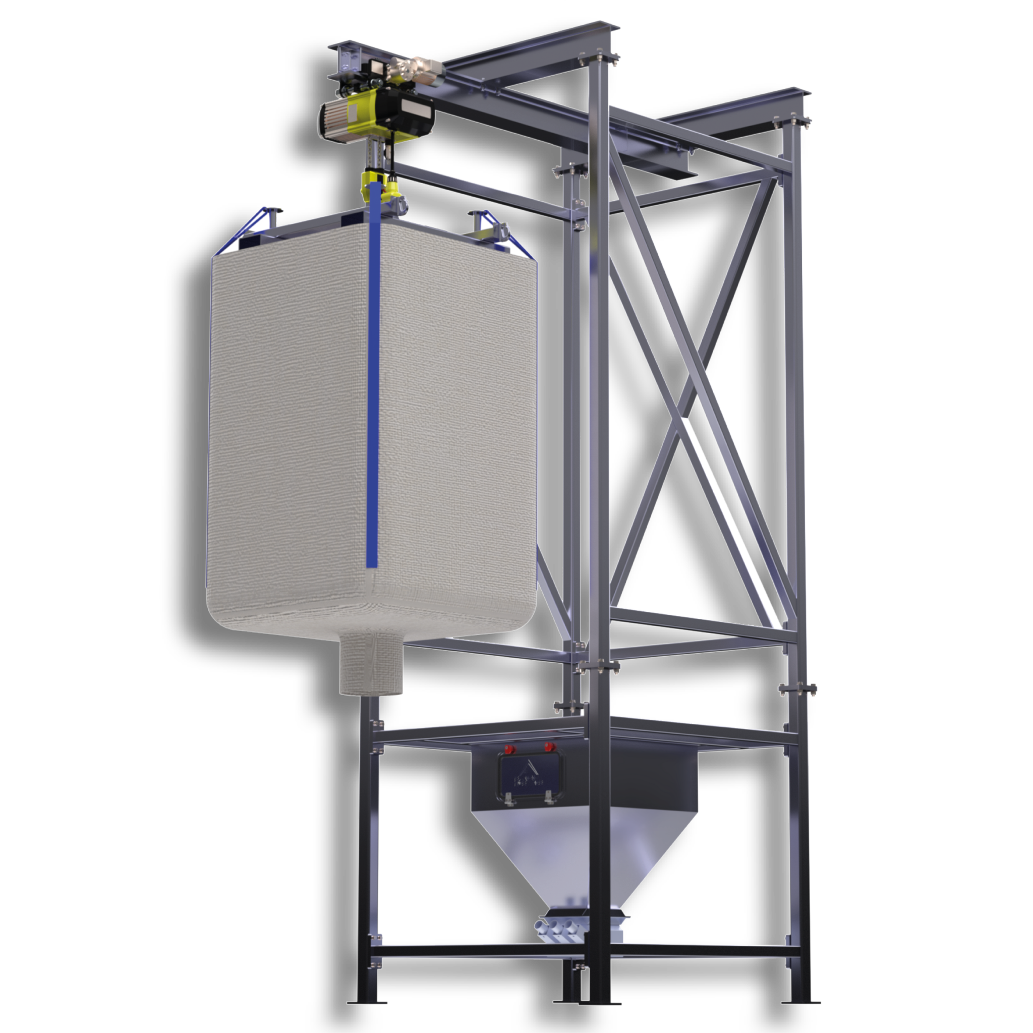 The frames integrate smart sensors for real-time remote monitoring, allowing operators to proactively address potential issues before they impact production. The SBBLH model also automates the lifting and positioning of bulk bags, reducing manual labour and increasing throughput.